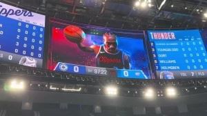 科技感拉满🤖!小吧在快船主场 这大屏幕的特效也太顶了吧!