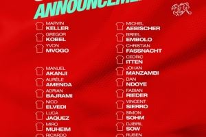 体育资讯11月5日讯 瑞士国家队公布11月世预赛名单,扎卡、阿坎吉、科贝尔在列。