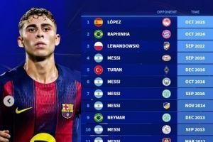体育资讯10月22日讯 在本轮欧冠巴萨6-1击败奥林匹亚科斯的比赛中,费尔明上演帽子戏法。